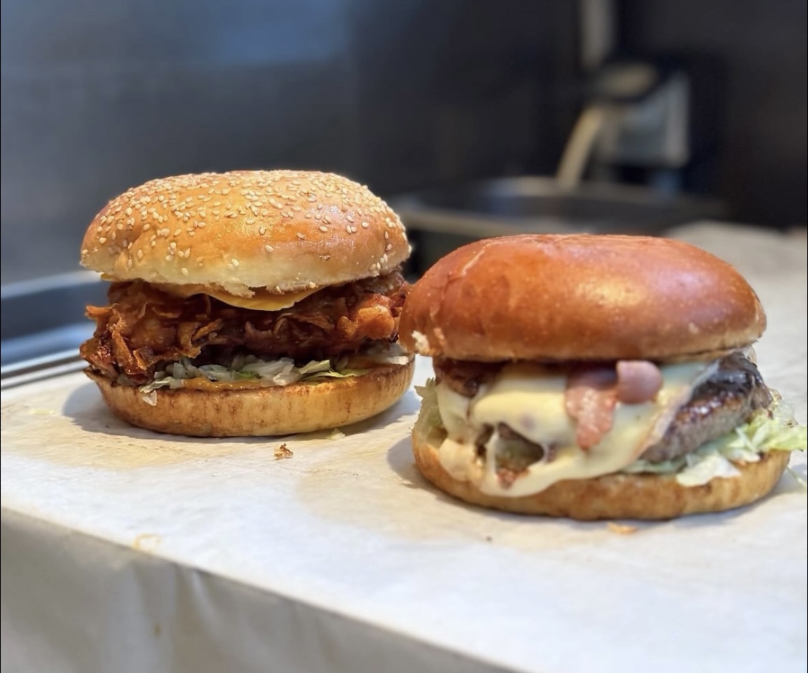 Le WHARF (Pain brioché, Croustillant au poulet panure maison, Cheddar affiné, Confit d'oignon, Salade, Sauce au choix)